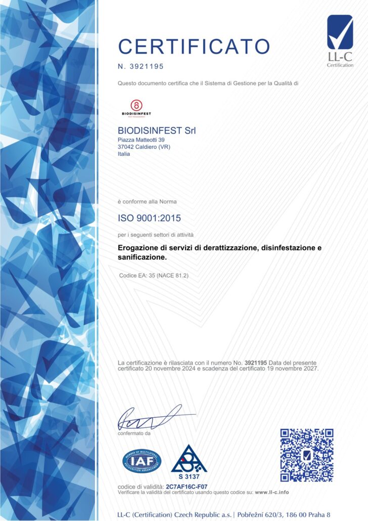 Come ogni anno, anche in questo periodo, Biodisinfest sta ricevendo le verifiche ufficiali da parte di LL-C Certification Italy per il mantenimento delle proprie certificazioni.